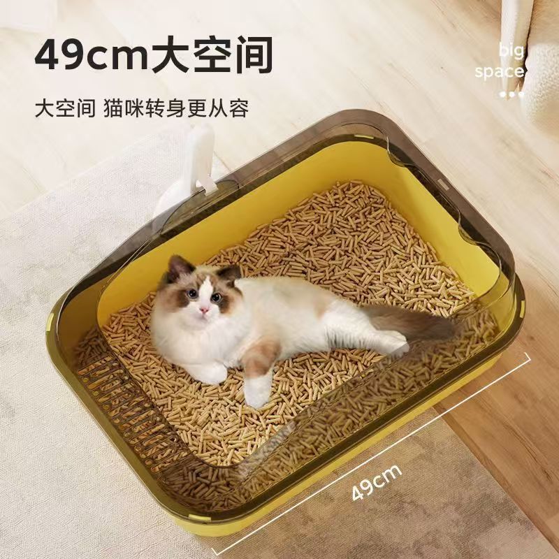 49cm Semi-Enclosed Cat Litter Box | Anti-Spill & Air Circulation Design